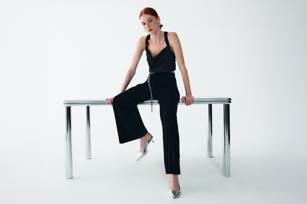 Black, velvet and sparkling details: the perfect mix for winter festivities.