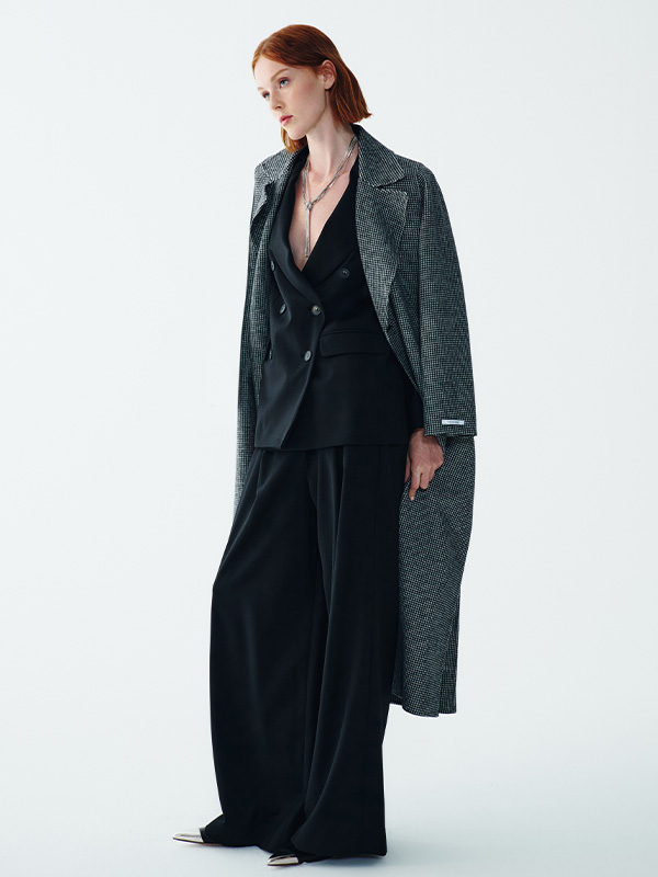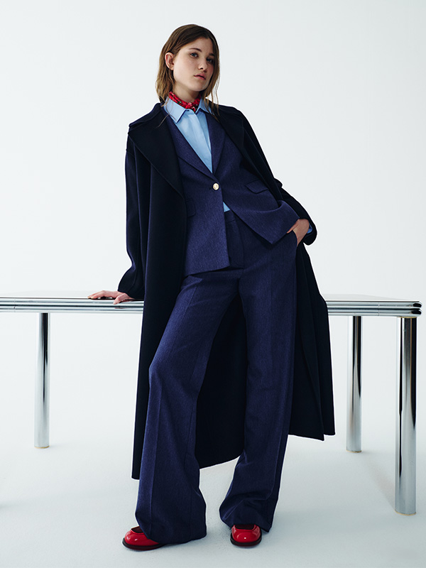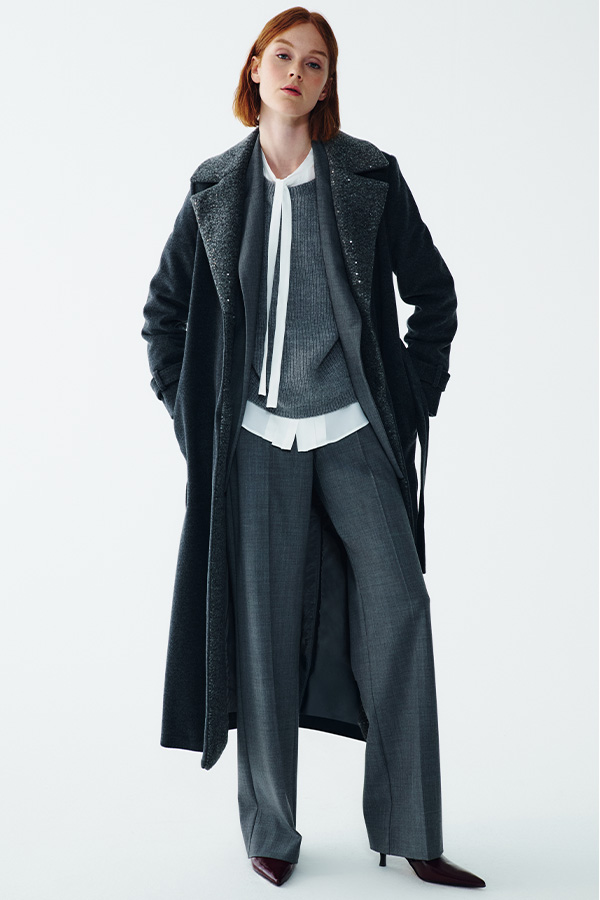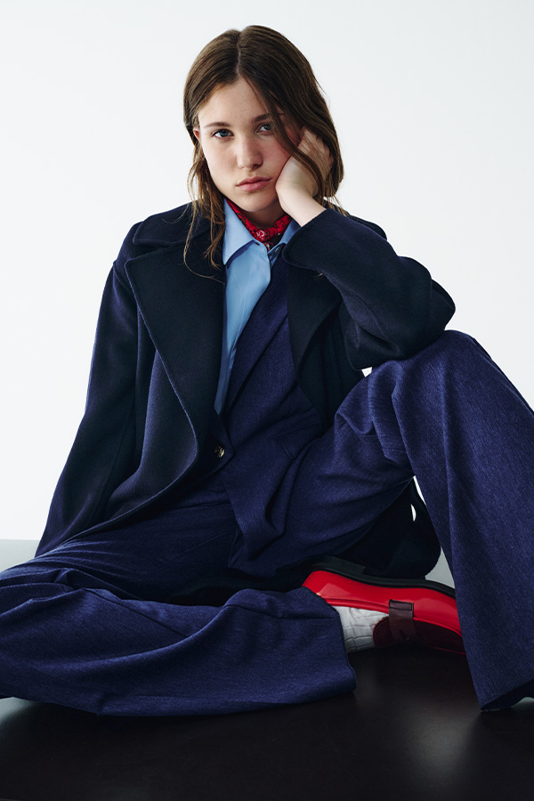 From a fresh and modern deep blue suit with light blue shirt, to a grey suit with sparkling details: every look becomes iconic when it meets the elegance of an oversized coat. Flowing lines, bold proportions and fine fabrics define the new winter aesthetic.