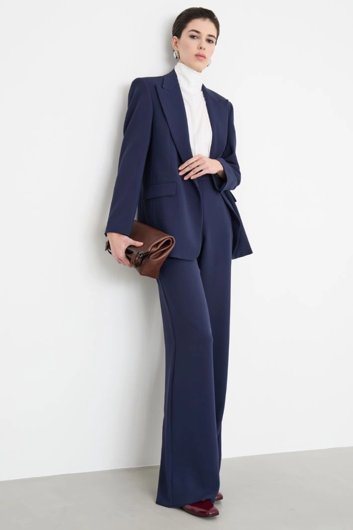 Straight-fit single-breasted blazer crafted in cady. This piece features peak lapels, a chest welt pocket, front flap pockets and long sleeves with buttoned cuffs. Single-button fastening.
