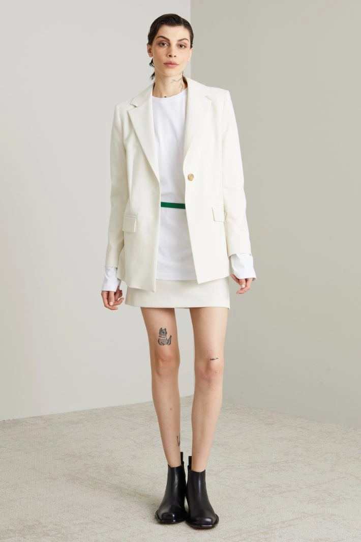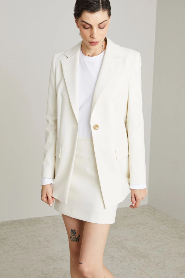 Straight-fit blazer in stretch viscose blend canvas, with lapel collar, long sleeves with buttons, double-welt side pockets with flap and central vent on the back. Single-breasted button fastening. Lined.