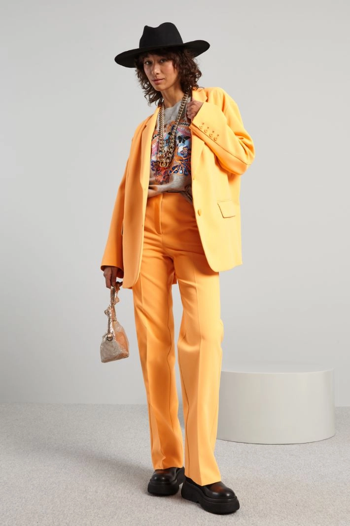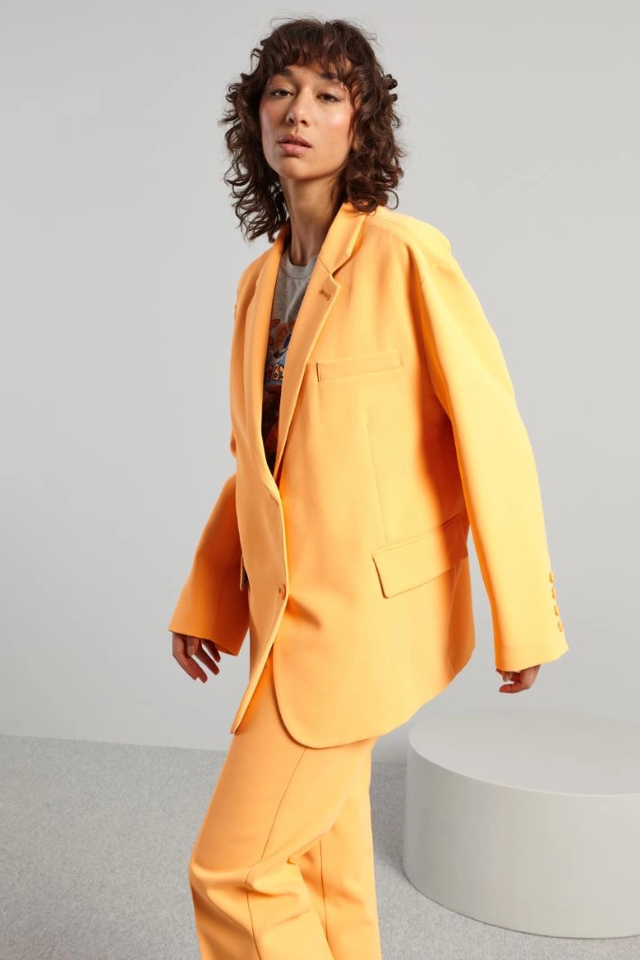 Oversized blazer in heavy cady, with lapel collar, long sleeves with buttons, welt pocket and double welt pockets with flap. Single-breasted button fastening. Unlined.