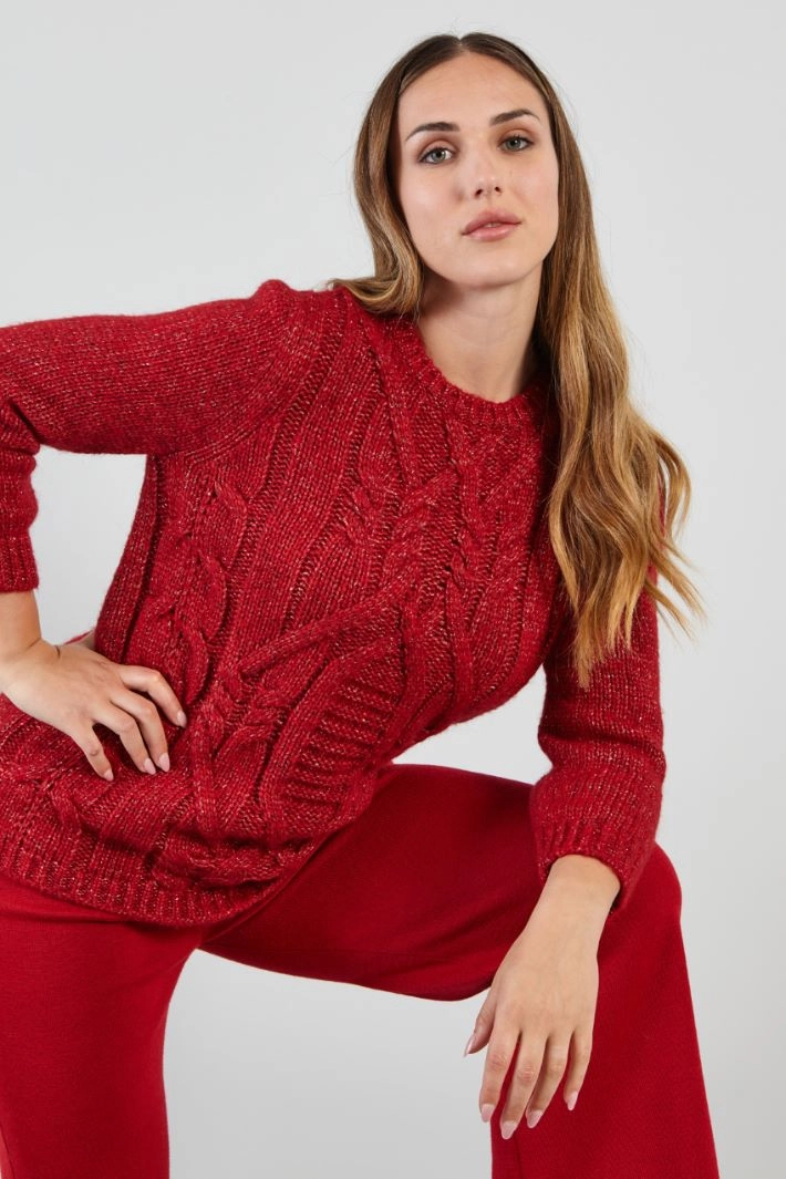Regular-fit sweater in wool and alpaca blend yarn with lamé fiber insert, raised motif on the front, crew neck, long sleeves and ribbed trims.