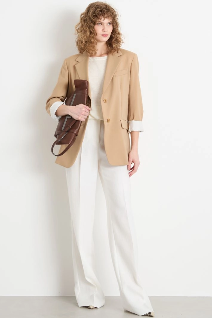 Straight-fit blazer in pure stretch wool canvas, with a lapel collar, chest pocket, long sleeves and flapped welt pockets. Central back vent. Lined. Single-breasted fastening with buttons.