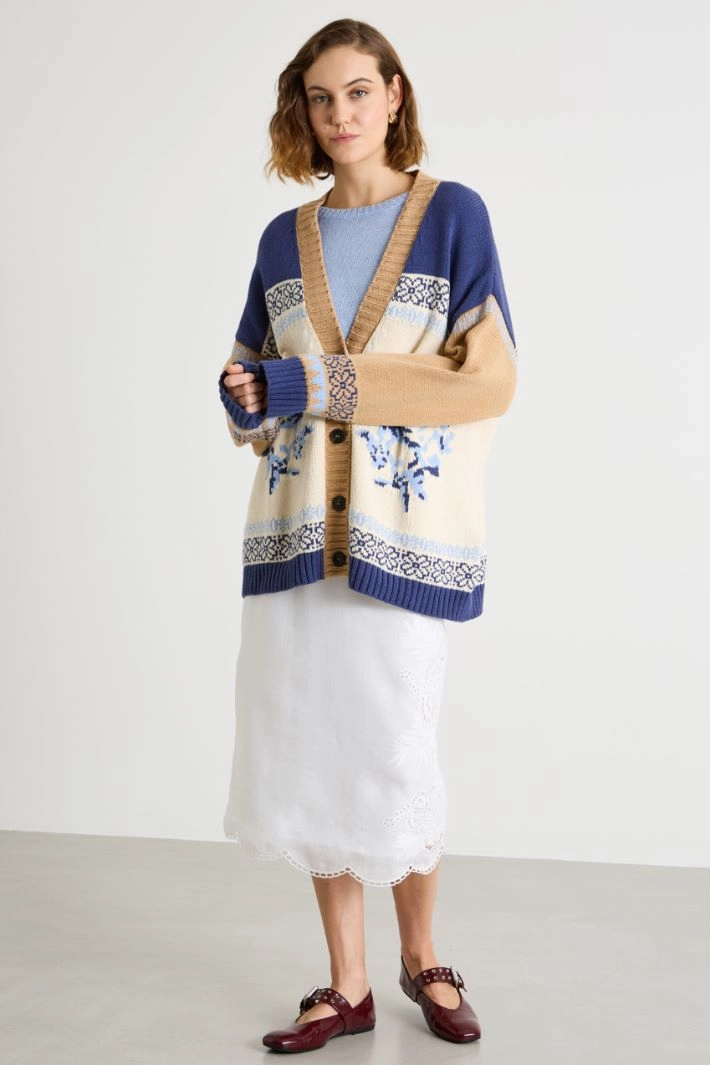 Colour-block jacquard cardigan