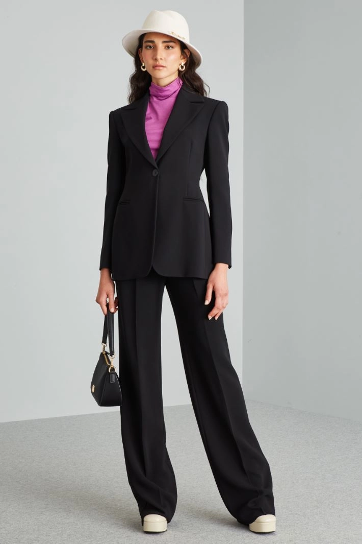 Slim-fit cady blazer with lapel collar, long sleeves with buttons and welt pockets. Lined. Single-breasted button fastening.