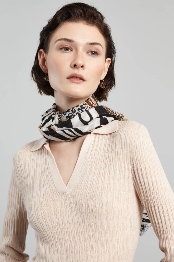 Stole in pure viscose yarn printed with printed profiles.