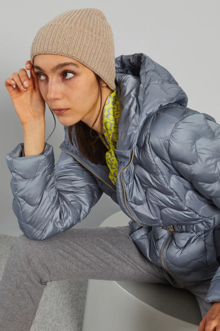 Beanie in wool, viscose and cashmere yarn, with rib-knit and turned-up hem.